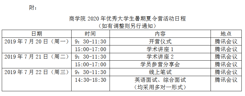 中央财经大学经济学院 第四届“龙马经济学夏令营” 招生公告 为促进全国高校优秀大学生之间的交流,选拔学术创新人才,中央财经大学经济学院将于2020年7月21-23日举办第四届“龙马经济学夏令营”,报名时间为7月9日至16日,欢迎有志攻读中央财经大学经济学院硕士研究生的优秀学子报名参加交流活动。 1 学院简介 中央财经大学经济学院成立于2003年,是中央财经大学拥有国家级重点学科最多的学院。学院拥有4个国家级重点学科、2个北京市重点学科,拥有理论经济学与应用经济学两个一级学科,拥有学士学位、硕士学位、博士学位授予点以及博士后流动站,培养体系完备。学院师资力量雄厚,人才梯队良好,拥有教育部长江学者和青年学者各2人、万人计划领军人才2人,全国优秀教师1人,国家百千万人才工程2人、中组部青年拔尖人才3人、国务院政府特殊津贴获得者7人、教育部新世纪优秀人才6人、北京高校卓越青年科学家项目入选者1人、北京市师德先进个人标兵3人。学院教师承担了一大批包括国家社科基金重大项目在内的国家级科研项目,多项研究成果获得教育部、北京市等省部级奖励。 2 研究生培养 在研究生培养方面,学院一贯高度重视学生学术能力的培养,采用多种措施鼓励学生进行学术创新,以早日成长为经济学领域的拔尖创新人才。目前,学院在国际商务专业招收专业学位硕士研究生,在政治经济学、西方经济学、经济史、经济思想史、世界经济、人口资源与环境经济学、国民经济学、区域经济学、产业经济学、劳动经济学和互联网经济学共11个专业招收学术型硕士研究生。 3 夏令营简介 本届夏令营营员规模计划为150人。在研究生院核定的接收推免名额内,学院将根据考核成绩,依次给予部分优秀营员2021年中央财经大学经济学院免试攻读硕士学位研究生候选人资格、博士学位研究生(直博生)候选人资格。进入候选名单的营员,须获得所在院校的推荐免试攻读硕士研究生的资格,并经我校研究生招生工作领导小组审核批准后,方能免试进入经济学院攻读硕士和博士学位。 学院2021年继续实行大类招生,计划招收50人免试攻读国际商务专业型硕士学位,15人免试攻读经济学学术型硕士学位,4人免试攻读经济学博士学位(直博生)。最终录取专业由营员夏令营考核成绩,结合个人志愿,按照各专业推免生招生计划依次确定。 特别提示:凡是有意向申请推免至经济学院的学生(申请支教保研的同学除外),务必报名参加本年度组织的此次夏令营活动。在今年9-10月份正式开展研究生推免和接收工作期间,仅当通过夏令营选拔并最终录取的推免生总数未达到学校下达的接收计划总数时,经济学院方会另行组织一次接收推免研究生的考核,该考核的具体安排另行通知。 4 报名条件 (一)、参营条件: 申请者须对经济学有浓厚兴趣,有志于未来从事经济学研究和经济管理工作,且满足以下条件: (1)具备较好的数理、英语基础,且对经济学具有浓厚兴趣、具备一定研究基础和能力的大学本科三年级学生; (2)本科阶段前五个学期学分加权平均分排名在所在专业前10%(含)之内,来自“双一流”高校和主要财经类院校学分加权平均分排名在所在专业前20%(含)之内。所有申请者专业必修课成绩均须在及格以上。 (3)一名熟悉申请人情况副教授及以上职称的专业教师进行推荐; (4)英语能力较强,通过英语六级考试,有相关证书或考试成绩证明(包括大学英语六级成绩、雅思(IELTS)、托福(TOFEL)成绩等)。 为鼓励学术创新,申请人在国内外公开出版物上以第一作者或通讯作者身份发表论文者,以上条件可以适当放宽。 (二)、报名流程及申请材料 所有人员均须同时通过(1)网上注册报名和(2)邮件发送申请材料两个步骤完成申请工作。 (1)网上注册报名 登录中央财经大学研究生院推免生报名系统(http://tuimian.cufe.edu.cn/ui),或是关注中央财经大学研究生招生办公室微信公众号,选择信息互动-推免报名,完成基本信息登记及报名。报名时间:2020年7月9日-2020年7月16日。 特别说明:系统仅需上传成绩单、成绩排名证明、英语水平证明、科研成果证明(其中参营论文无需上传,仅上传公开发表的文章即可)以及获奖证明。附件格式为pdf,单个文件大小不超过2M,文件内容需与纸版入营材料严格一致。网报系统仅支持上传一个压缩包文件(大小不超过10兆),格式支持zip和rar,申请人上传前须将所有附件调整大小,压缩打包。除了系统上传的附件材料,申请人需要邮件提交第二步中要求的申请材料。 (2)邮件发送申请材料 从7月9日开始,申请人即可以发送电子邮件的形式提交下面申请材料电子版,请统一发送到邮箱:zhuwei429@163.com,邮件主题为“姓名-本科所在学校-手机号”,电子邮件申报截止日期为2020年7月16日24:00,逾期提交无效。申请材料一经确认提交,不得进行修改,请勿重复发送邮件。 需要发送的申请材料为: ①中央财经大学经济学院“龙马经济学夏令营”报名表(见附件1) ②成绩单; ③一封专家推荐信,须有推荐者签字(见附件2); ④参营论文1-2篇(已发表论文或工作论文); ⑤英语考试成绩单(复印件); ⑥申请者本人身份证复印件(正反面); ⑦申请者本人学生证复印件(学号页、注册页); ⑧与经济学相关的获奖或资格证书(非必需) 特别说明:所有材料在发送电子邮件时,均需对原件进行扫描,扫描后将所有材料