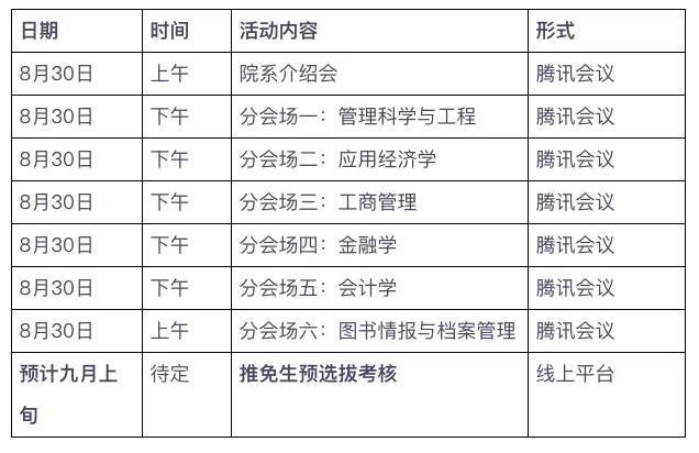 申请专业/申请方向:管工学硕、管工直博、应经学硕(国贸学硕、国经学硕、区经学硕、产经学硕)、金融学硕、应经直博、工商学硕(企管学硕、技经学硕)、会计学硕、图情档学硕、金融专硕、会计专硕、资产评估专硕、物流专硕等。