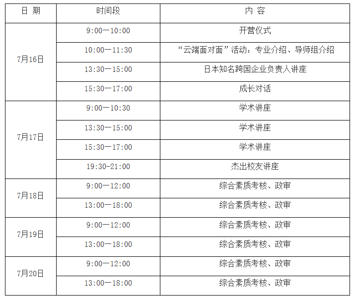 日本文化经济学院将依据营员综合素质考核对营员进行选拔,根据“成绩优先”原则确定“优秀营员”名单。