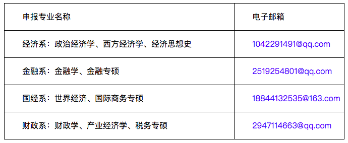 学术型:政治经济学、西方经济学、经济思想史、金融学、世界经济、产业经济学、财政学。